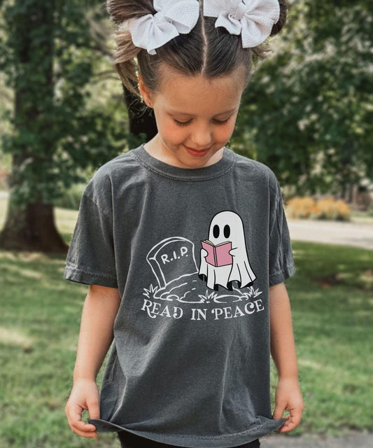 Read in Peace Kids Ghost Book Shirt