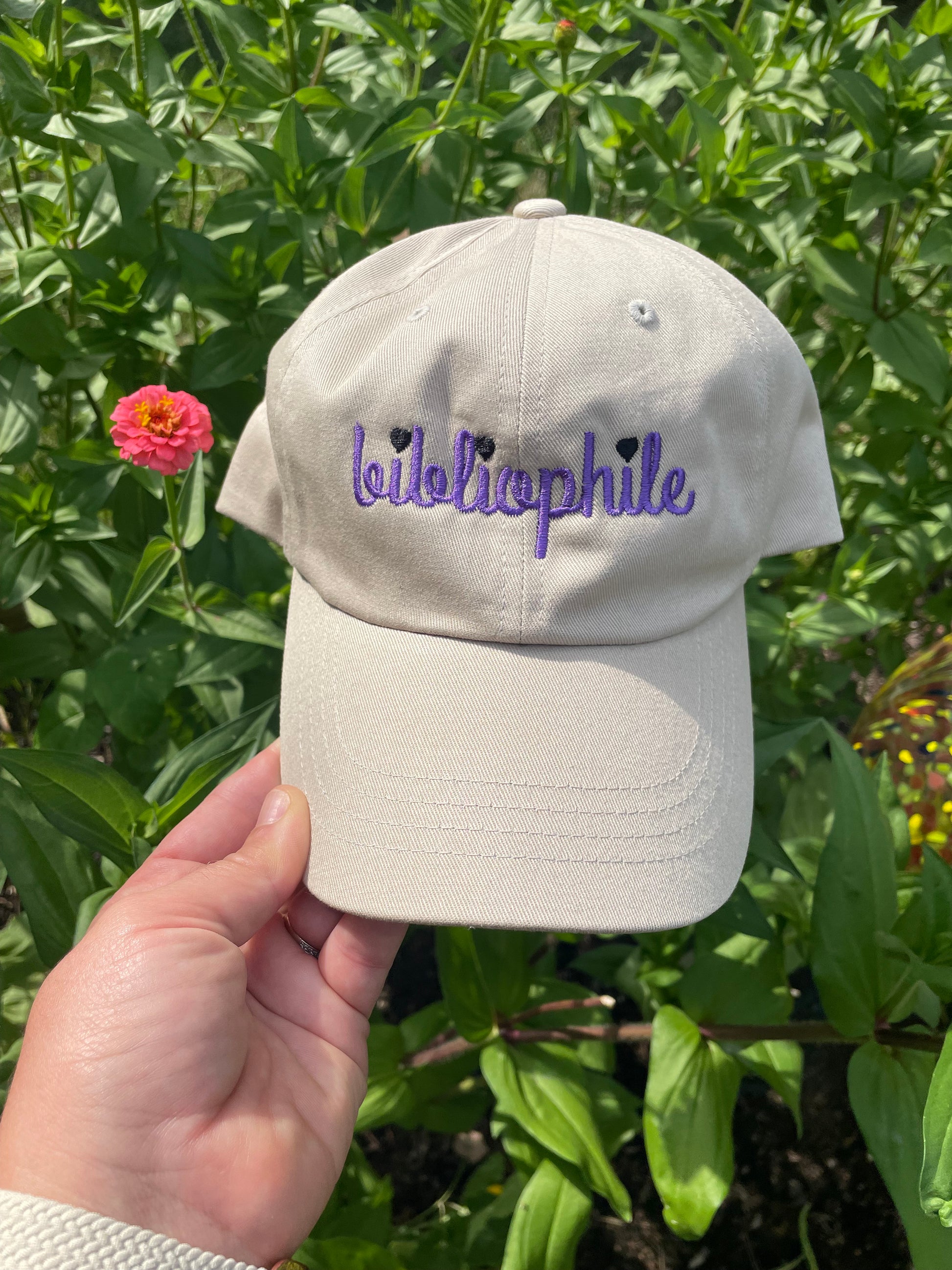 Our "bibliophile" embroidered hat is perfect for all book lovers! Enjoy reading outdoors, at the lake, or on the beach! With purple and black thread this trendy hat makes a great gift for a book loving friend.