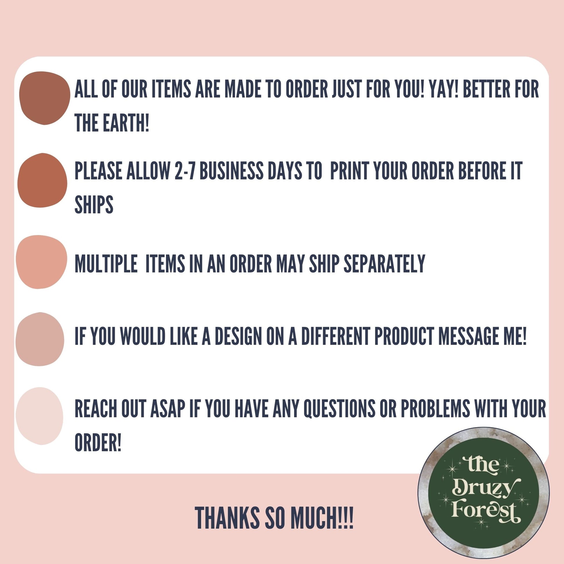 Our items are individually made with love for each of our buyers. Because of this, our processing time is 2-7 business days (depending on order volume) plus transit time, but typically much faster! We know our customers want their items as quickly as possible! We ship from the US typical ground USPS shipping time is 2-7 days. Please allow longer for busy seasons and extreme weather conditions.