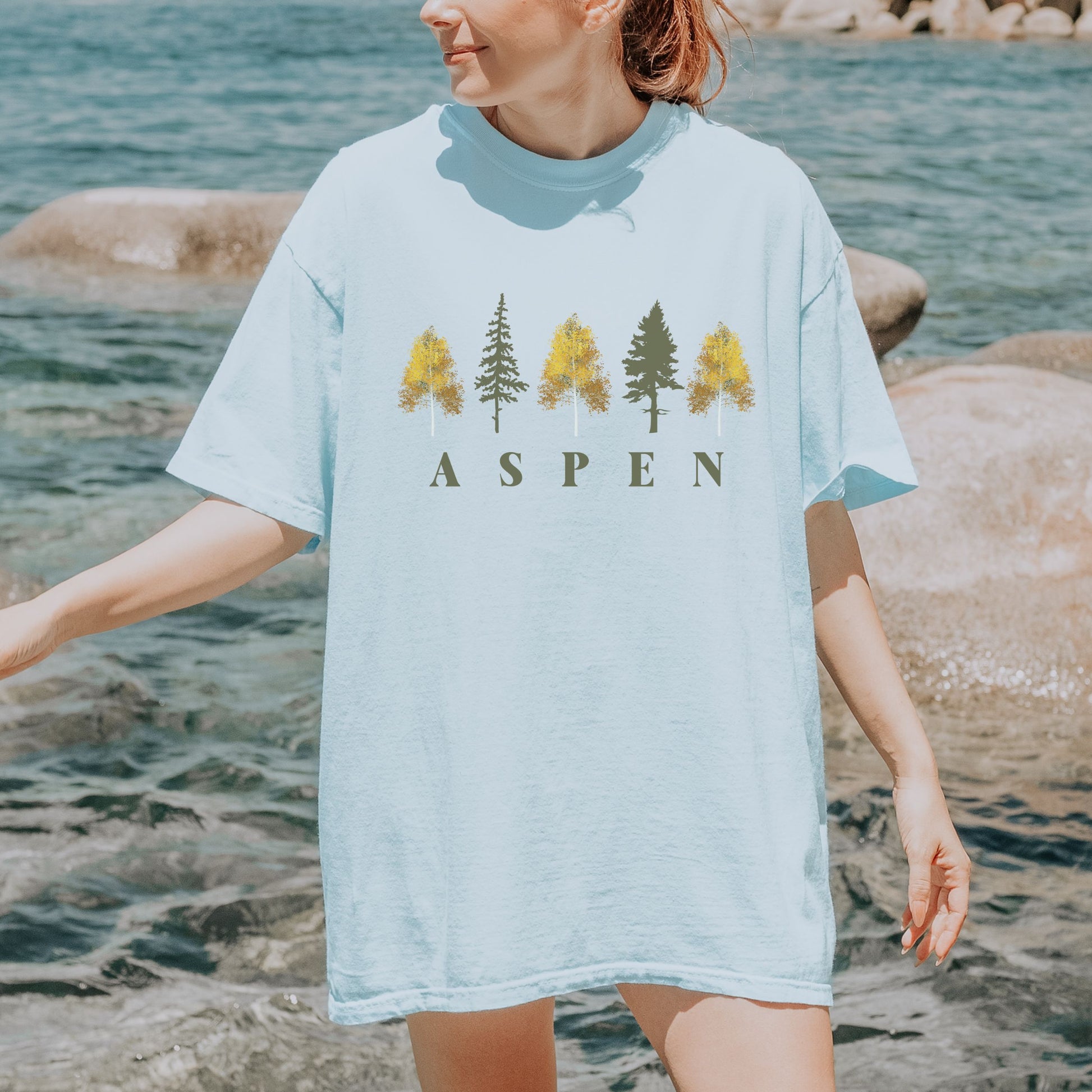 A trendy Aspen, Colorado graphic tee with aspen trees and pine silhouettes printed on a popular Comfort Colors® shirt! Perfect for both mountain forest adventurers and those seeking comfy travel magic!